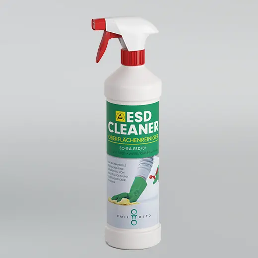 „Der Oberflächenreiniger EO-RA-ESD/01 entfernt Fett- und Schmierfilme oder andere hartnäckige Verunreinigungen, die in einer Fertigung auftreten können, einwandfrei“, erklärt Geßner weiter. Dabei ist die Verträglichkeit des EO-RA-ESD/01 gegenüber den gängigen Kunststoffen gut. Bei empfindlichen Kunststoffflächen wirkt der Reiniger schonend, wodurch das EO-RA-ESD/01 einen breiten Anwendungsbereich abdeckt. Das neue Reinigungsprodukt kann auch bei beschichteten oder lackierten Oberflächen eingesetzt werden. Für das einfache Auftragen wird der EO-RA-ESD/01 in einer 1 Liter-Sprühflasche angeboten. Zum Nachfüllen kann der Reiniger auch in 5 bis 30 Liter Kanistern bezogen werden.