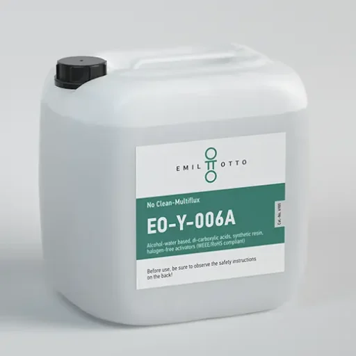 The individual variants of EO-Y-006 allow customers to select a flux that is tailored to their application. The A variant has a low solids content of around 2% and was specially developed for full-tunnel nitrogen applications. The flux guarantees very good soldering results under full nitrogen due to its wide process window and high temperature stability. The standard version corresponds to the B variant, which has a solids content of around 3%. This version of the EO-Y-006 is also available as a dosing pen or dosing bottle. The third version is the C variant, which was specially developed for power electronics where large component bodies have to be soldered with a high placement density.